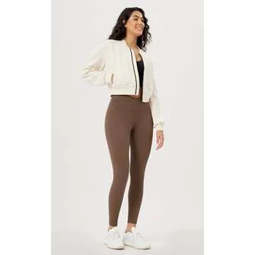 ODODOS Women's Cross Waist 7/8 Yoga Leggings with Inner Pocket, Inseam 25" Gathered Crossover Workout Yoga Pants, Brunette, Small