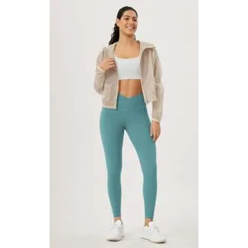 ODODOS Women's Cross Waist 7/8 Yoga Leggings with Pockets, Inseam 25" Gathered Crossover Workout Yoga Pants, Teal, X-Small