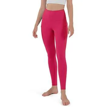 ODODOS Women's High Waisted Yoga Leggings with Pockets,Tummy Control Non See Through Workout Athletic Running Yoga Pants, Full-Length, Fuchsia,X-Large