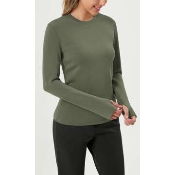 ODODOS Women's Modal Soft Long Sleeve T-Shirt with Thumb Holes, Crew Neck, Fitted Pullover for Casual & Layering, Dark Sage, Large