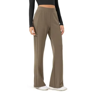 ODODOS Women's Modal Soft Mini Flared Pants with Pockets High Waist Pull-On Casual Lounge Pants-31 Inseam, Espresso, Medium