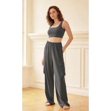 ODODOS Women's Modal Soft Wide Leg Cargo Pants with Pockets Adjustable Shockcord High Waist Loose Jogger Pants, Charcoal, Medium