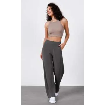 ODODOS Women's Modal Soft Wide Leg Pants Elastic High Waist Casual Lounge Relaxed Pants with Pockets - 27" Inseam, Charcoal, X-Large