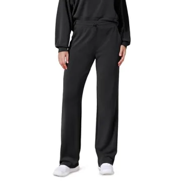 ODODOS Women's Modal Soft Wide Leg Pants with Pockets Adjustable Shockcord Pants-31 Inseam, Black, Medium