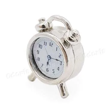 Odoria 1/12 Miniature Alarm Clock Dollhouse Decoration Accessories, Silver