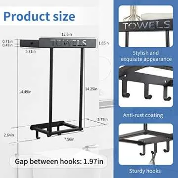 ODSNANIE Towel Racks Wall Mounted for Bathroom, Metal Towel Drying Rack Towel-Bars Towel Holder Ideal Bathroom Storage Organizer and Decor,Towel Shelf Black Towel Storage with 3 Towel Hooks
