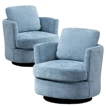 Show more Introducing the ultimate solution for comfort and style in your living space: a stunning set of barrel swivel chairs crafted from soft and luxurious Chenille fabric. This set, designed with meticulous attention to detail, offers an inviting touch that beckons relaxation. Each chair has a high-density foam seat cushion that provides exceptional support during long hours of sitting, whether you're unwinding with a good book or engaging in lively conversations with friends.
