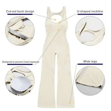 OEAK Womens Flare Jumpsuit with Bra Tummy Control Cutout Romper Workout Outfit Sleeveless Unitard One Piece Backless Bodysuit