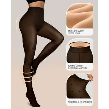 OEAK Womens Fleece Lined Tights Fake Translucent Pantyhose Thermal Opaque High Waisted Winter Legging Footed Sheer Tights 220g Fake Translucent Black Heart S/M