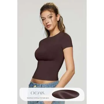 OEAK Womens T-Shirts Short Sleeve Shirts Crew Neck Basic Tees Soft Smoothing Seamless Tshirts Slim Fit Going Out Trendy Tops Cocoa XS Brown