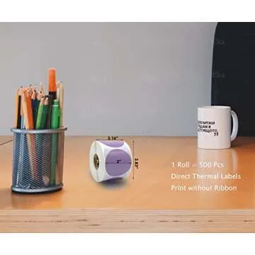 OEka 2 Inches Round Direct Thermal Labels Blank Shipping Labels Address Labels 500Pcs/Roll Compatible with Rollo & Zebra Desktop Printers(1 Roll, Purple)