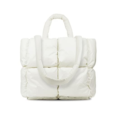 oexe Puffy Luxury Tote Bag - Large Puffer Handbag for Women (White-M)