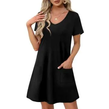 Show more Introducing the OFEEFAN Black Summer Dress for Women - your essential wardrobe staple for 2025! Elegantly designed, this loose V-neck T-shirt dress hits the sweet spot between casual and chic, making it perfect for any occasion from casual outings to beach vacations. Crafted from a skin-friendly, soft, and elastic fabric, this dress is not only incredibly comfortable but also breathable and designed to withstand the rigors of summer wear. Say goodbye to prickly fabrics; this dress offers an unrivaled wearing experience that you'll cherish during those hot sunny days.
