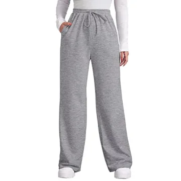 OFEEFAN Grey Pants Women Elastic Waist Pant with Pockets Long Winter Sweatpants Grey M