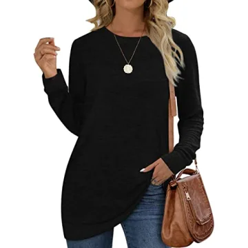 Show moreIntroducing the OFEEFAN Women's Long Sleeve Tunic Sweatshirt, a perfect blend of style and comfort that is essential for your fall and winter wardrobe. Designed using a luxurious fabric blend of 65% polyester and 35% rayon, this top is both soft and lightweight, ensuring breathability throughout your day. The classic crewneck and long sleeves contribute to a timeless silhouette, making this piece flattering for all body types.