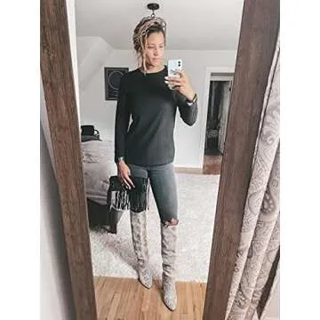 OFEEFAN Women's Pullover Sweaters Long Sleeve Winter Casual Tops for Women Black M
