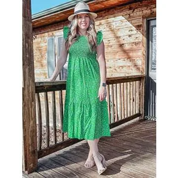 OFEEFAN Womens Easter Dress Spring Dresses 2025 Tiered Dress Midi Dress Green Floral S