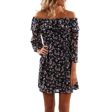 Off Shoulder Strapless Floral Print Pleated Dresses (Red)