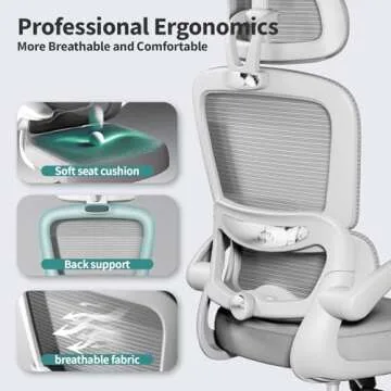 Show moreTransform your workspace with the Office Chair Ergonomic Desk Chair, a blend of comfort, style, and functionality. This finely crafted chair is designed to provide unmatched support for your head, back, hips, and arms, catering perfectly to the needs of those who spend long hours seated. With its tailored lumbar support, this ergonomic chair allows you to enhance your productivity while keeping your comfort and well-being as top priorities. Suitable for individuals ranging from 5’5” to 6’2”, it features easily adjustable elements such as seat height, headrest, backrest, and flip-up arms, ensuring a customized fit for every user.