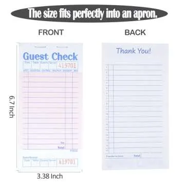 Show moreIntroducing the **Officeva Guest Checks Server Note Pads**, a must-have tool for every food service professional! This charming six-pack of pink guest check pads brings efficiency and organization to the forefront. Each pad measures a compact 6.7 x 3.5 inches, perfectly designed to fit in your apron pockets or server book, making it easily accessible during busy shifts. With a total of **300 sheets** at your disposal, this set provides ample space for jotting down orders, ensuring that nothing gets mixed up during rush hours.