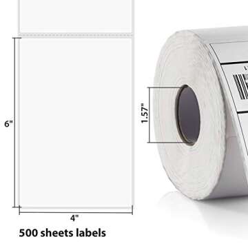 OFFNOVA Thermal Direct Labels, Pack of 500 Roll 4"x6" Shipping Labels with Perforation, Compatible with Rollo and Zebra, Permanent Adhesive, Commercial Grade
