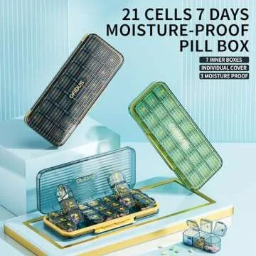 OFIDUS 21 Cells 3 Times a Day Pill Organizer - Large Capacity Waterproof and Moistureproof Daily Pill Case Removable Separate Cell 21 Days Pill Organizer Suitable for Travel and Everyday(Green)