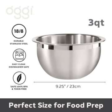 Oggi 8-Quart Two-Tone Stainless Steel Mixing Bowl, Great for Mixing, Making Dough, Dressing Salads, Mixing Eggs, Washing Vegetables