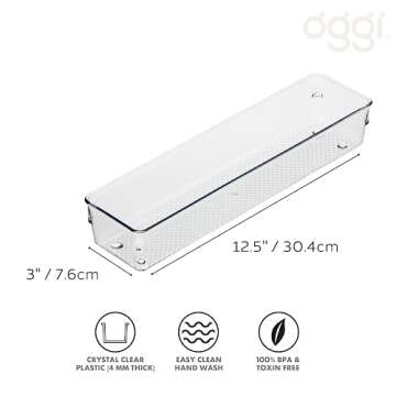 Why You Will Love This Product?The Oggi Clear Drawer Organizer offers more than just practicality; it greatly enhances your living experience. Say goodbye to the frustration of rummaging through cluttered drawers. With this organizer, everything you need is at your fingertips, beautifully displayed and easily accessible. Imagine the peace of mind you'll enjoy knowing that every item has its designated place. Elevate your home or workspace aesthetic while fostering a sense of order that contributes to an overall happier, stress-free environment.