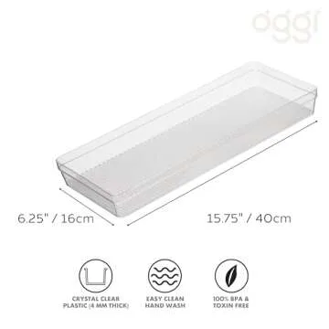 Oggi Clear Drawer Organizer - 6.25" X 15.75" - Ideal for Organizing Kitchen Drawers, Office, Desk, Silverware, Kitchen Utensils, Cosmetics and Bathrooms