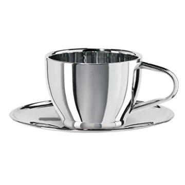 Oggi Insulated Coffee Cup Set - 12oz Elegant Mirror Finish - Saucer Included