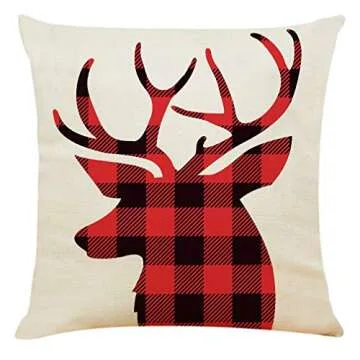 Ogrmar 4PCS 18"x18" Throw Pillow Covers Christmas Decorative Couch Pillow Cases Cotton Linen Pillow Square Cushion Cover for Sofa, Couch, Bed and Car (Christmas-E)
