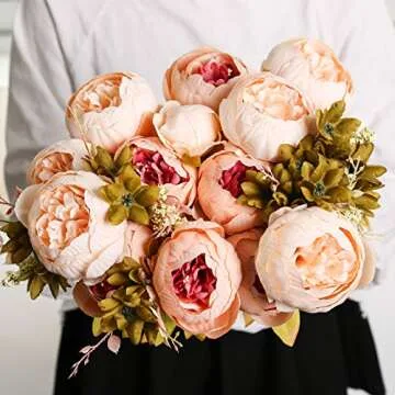 Show moreTransform your space into a blooming paradise with the Ogrmar Vintage Artificial Peony Silk Flowers Bouquet. Each bouquet proudly showcases an enchanting blend of handcrafted elegance, beautifully composed of 90% silk and 10% plastic. With 13 stems adorned with 6 luscious flowers and 2 delicate buds, these peonies create an exquisite focal point for any décor. Measuring approximately 3.5 inches wide and a total length of 18.9 inches, they fit effortlessly into any tall vase or arrangement, whether you're aiming for a whimsical bridal bouquet or a charming coffee table centerpiece.