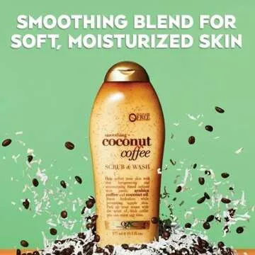 Show more Introducing the OGX Smoothing + Coconut Coffee Exfoliating Body Scrub & Wash, a luxurious treat for your skin that combines the rich goodness of arabica coffee and coconut oil to create an indulgent spa-like experience in the comfort of your home. This 19.5-fluid ounce bottle contains a unique formulation designed specifically to smooth and hydrate your skin, leaving it feeling irresistibly soft and radiant.