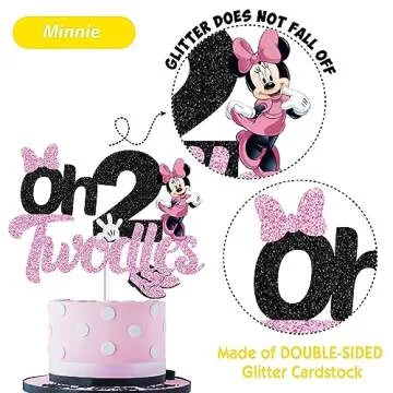 Oh Twodles Cake Topper for Girls, Black Glitter Mouse Second 2nd Birthday Cake Topper with Pink Bows and White Gloves Girls Birthday Party Decorations Supplies(Double-sided)