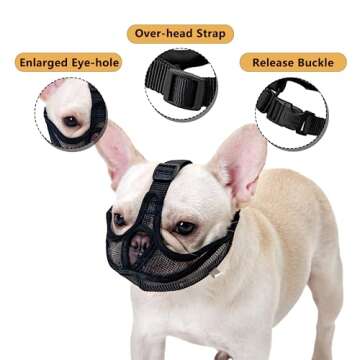 Show moreIntroducing the OHCOZZY Short Snout Dog Muzzle, specifically designed for your beloved bulldog! This innovative muzzle seamlessly combines functionality with comfort, making it the perfect accessory for short-nosed breeds. Crafted from breathable mesh material, it is ideal for keeping your dog safe while allowing them to breathe easily. Plus, the adjustable straps ensure a secure fit without covering your dog’s forehead, promoting comfort during use. No more worries about biting, barking, or chewing! The sleek black design is not just aesthetic; it’s practical, ensuring your pup stays stylish while safe.