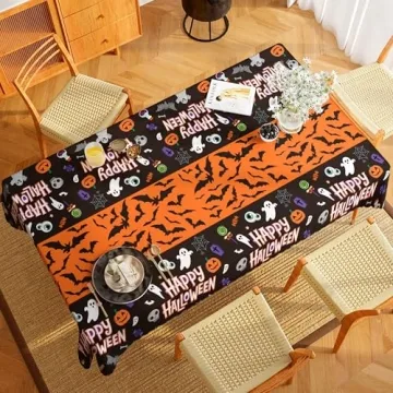 Show more Get ready to transform your Halloween celebrations with the **OHOME Halloween Decorations** set! This vibrant duo of tablecloths, each measuring **86.6 x 51.2 inches**, adds the perfect festive touch, making them essential as both **party decorations** and **table covers**. Crafted from **high-quality polyester**, these tablecloths are durable, **wrinkle-resistant**, and designed to withstand the wear and tear of multiple festivities while keeping their **vibrant Halloween designs** intact. Featuring playful elements such as **skeletons, bats, ghosts, and pumpkins**, they effortlessly enhance the **spooky ambiance** of your gathering, whether indoors or outdoors.