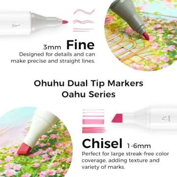 Show moreUnlock your creative potential with the Ohuhu Alcohol Markers 48 Pastel Colors - your ultimate partner in art! This dual-tipped marker set includes 48 vibrant pastel hues and a free blender, allowing you to bring your artistic visions to life with ease. Whether you’re a seasoned artist or a hobbyist, these markers will elevate your coloring experience to new heights. With each marker's fine tip, you can create intricate details, while the broad chisel tip allows for quick fills and textures. This versatility makes these markers perfect for anything from adult coloring books to professional illustration work.
