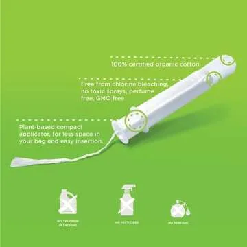 Show moreIntroducing the Oi Organic Tampons, the ultimate choice for those seeking a safe and eco-friendly period care solution. Crafted with a top layer of organic cotton and an absorbent core, these tampons prioritize health and comfort by entirely avoiding plastic, SAP, wood pulp, and synthetic materials, making them perfect for sensitive skin. Each tampon is free from perfumes, dyes, chlorine bleach, irritants, and allergens, ensuring that every month feels safer and more comfortable. No harmful chemicals are present in our products, as the organic cotton is cultivated without any toxic substances, harmful pesticides, or synthetic fertilizers.