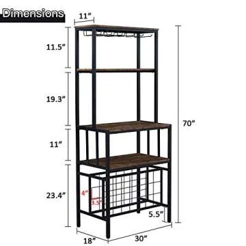OIAHOMY Industrial Wine Bakers Rack,4-Tier Wine Rack Freestanding Floor with Wine Storage and Glass Holder,Multi-Function Home Bar Furniture Wine Bar Cabinet for Home Kitchen Dining Room