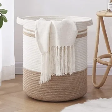 Unlike typical laundry baskets that tend to be either flimsy or overly simplistic, the OIAHOMY Laundry Basket combines aesthetic appeal with functional design. Many baskets lack the soft touch of its cotton rope construction or the stylish sophistication that complements modern decor. With its robust handles and the convenience of being machine washable, this basket outshines others that may require manual cleaning or lack durability. Moreover, its thoughtful construction ensures it holds up under heavy loads without compromising structural integrity.