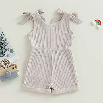OikMombiu Toddler Baby Girl Sleeveless Jumpsuit Solid Ribbed Knitted Romper Shorts Overalls One-Piece Outfit Summer Clothes(A1 Pocket Beige Apricot, 6-12 Months)