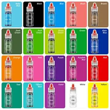 This complete set features 20 distinct shades, ranging from classic colors like RED and YELLOW to more exotic hues like TEAL and PURPLISH RED. Each squeezable bottle is designed for easy application, letting you control the intensity of the color with precision. The upgraded texture is thinner than gel yet thicker than liquid, ensuring a perfect blend that speaks to both aesthetics and functionality.