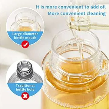 Show moreIntroducing the ultimate kitchen companion - the **Oil Sprayer for Cooking**! This versatile **210ml big mouth olive oil dispenser bottle** is designed to simplify your culinary adventures, enabling you to spray your favorite oils and vinegars evenly with just a press of a button. Crafted from **food-grade materials**, it ensures that your cooking encounters are safe and healthy. The innovative spritzer design allows you to control the amount of oil you use, making it perfect for BBQs, air frying, and salad dressings, giving you full control over your meal without any mess or spills.