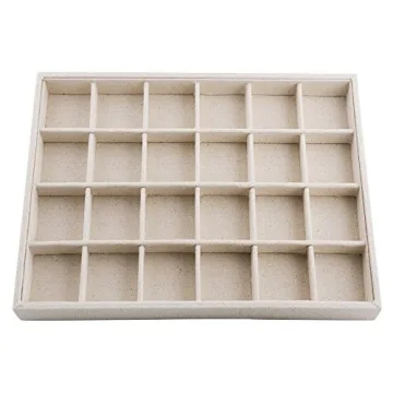 Oirlv Stackable Linen Jewelry Tray - Adjustable 24 Grid Organizer for Drawer or Showcase