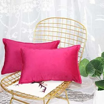 Oirpro Solid Velvet Throw Pillow Covers Pack of 2 Decorative Cushion Cases Soft Lumbar Pillow Covers for Couch Bed Sofa 12x20 inch Hot Pink