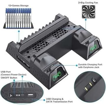 OIVO PS4 Stand with PS4 Cooling Fan Cooler for PlayStation 4/PS4 Slim/PS4 Pro, PS4 Pro Vertical Stand with PS4 Controller Charger Dock Station and 12 Game Slots