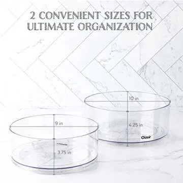 Show moreIntroducing the Oizeir Lazy Susan Turntable—your ultimate companion for effortless organization! This handy two-pack includes a small turntable with an 8.9-inch diameter and a larger 11.8-inch model, designed to fit perfectly into any space. Say goodbye to chaos in your cabinets and fridge; with these sleek turntables, accessing your favorite spices, condiments, and even beauty products becomes a breeze. Engineered for functionality, they allow easy organization of everything from food items to cosmetics, making them an essential addition to any home or office environment.