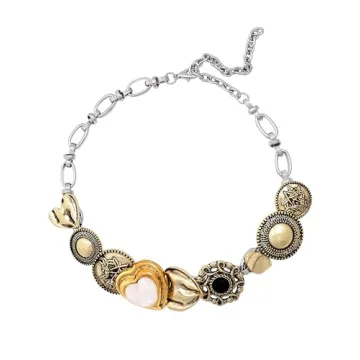 Show moreIntroducing the OJERRY Byzantine Medieval Renaissance Bold Vintage Retro Chunky Costume Statement Pendant Choker Necklace, a striking accessory that is sure to elevate any outfit and make a lasting impression. This stunning piece features an assortment of various retro copper-styled pendants inspired by the grandeur of Byzantine history, delivering an extraordinary visual treat. Measuring 14 inches in length, this necklace is designed to fit snugly around the neck, creating a bold and eye-catching focal point that radiates elegance and style. Made from durable stainless steel, it not only boasts aesthetic appeal but also offers resilience, ensuring it withstands daily wear without compromising on quality.