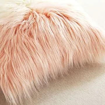 OJIA Deluxe Mongolian Faux Fur Plush Pillow Cover - Stylish Comfort for Your Home (18 x 18 Inch, White Pink)
