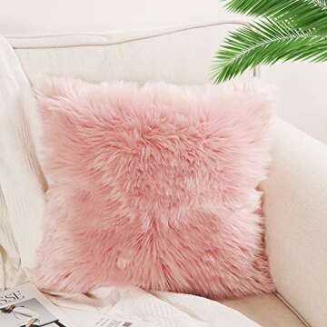 OJIA Faux Fur Throw Pillow Cover Cushion Case Super Soft Plush Accent Pillows Case Decorative New Luxury Series Style (18 x 18 Inch, Thick Pink)